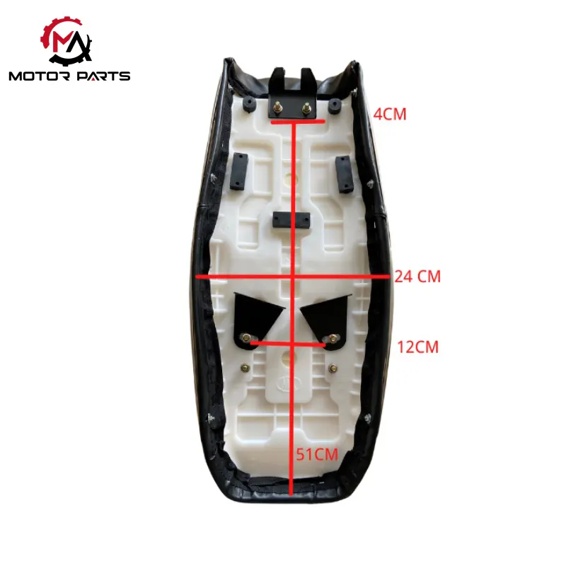 Оптимизирана структура на основната плоча: Предлагаме две опции: основна плоча от ABS инженерна пластмаса (удебелена 8 mm) и класическа основа от стоманена плоча. Като висококачествена фабрика за възглавници за мотоциклетни седалки CG125, нашата ABS основна плоча разполага с напълно водоустойчива структура и с противоплъзгащите подложки в долната част, тя може да прилепне здраво към рамката дори по неравни пътища.