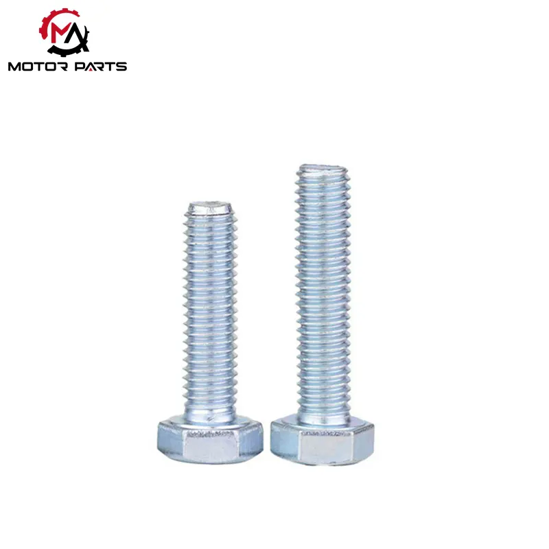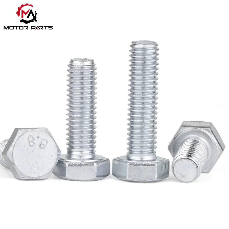 Шестоъгълен болт M8-M14 от поцинкована въглеродна стомана е често използван продукт за закопчаване на мотоциклети, предлаган отМакс търговия, базиран в Китай производител и доставчик на крепежни елементи за мотоциклети. Изработени от висококачествена въглеродна стомана и обработени с галванизирано защитно покритие, тези болтове предлагат баланс между основна здравина, устойчивост на корозия и рентабилност. Те са подходящи за различни некритични носещи части на мотоциклети, като приспособления за рама, скоби за седалки, калници и изпускателни системи. Тази продуктова серия покрива спецификации от M8 до M14, улеснявайки сглобяването на автомобила и последващата поддръжка.