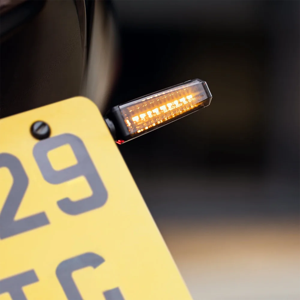 Предните мигачи са монтирани от двете страни на кормилото, докато задните са разположени симетрично до модула на задните светлини.