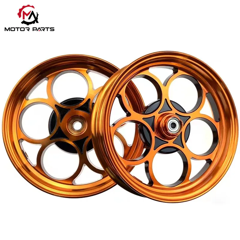 Макс търговия, професионална фабрика за главини на колела за мотоциклети, специализирана в производството на висококачествени главини на колела за Honda DIO50. Нашите главини на мотоциклетни колела Honda DIO50 са изработени от кована алуминиева сплав и можем да персонализираме различни цветове и дизайн според нуждите на клиента. 10-инчовите главини на колелата съвпадат перфектно с елегантните линии на каросерията на Honda DIO50, създавайки компактен и гладък цялостен вид и вкарвайки забавно и оживено визуално излъчване в мотоциклета. Този дизайн не само отговаря на стремежа на потребителите за персонализирани и модерни двуколесни превозни средства, но също така прави вашата Honda DIO50 да се откроява в трафика с уникалния си външен вид.
