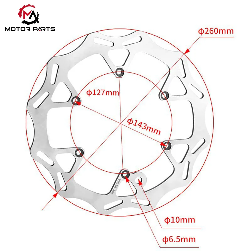 Унифициран диаметър от 260 мм: Основните модели на спирачния диск приемат еднакво спецификация за диаметър от 260 мм. Типичен пример е модел 77709160000, който е напълно съвместим с автомобили от серията KTM MX/Enduro, произведени от 2003 до 2025 г.