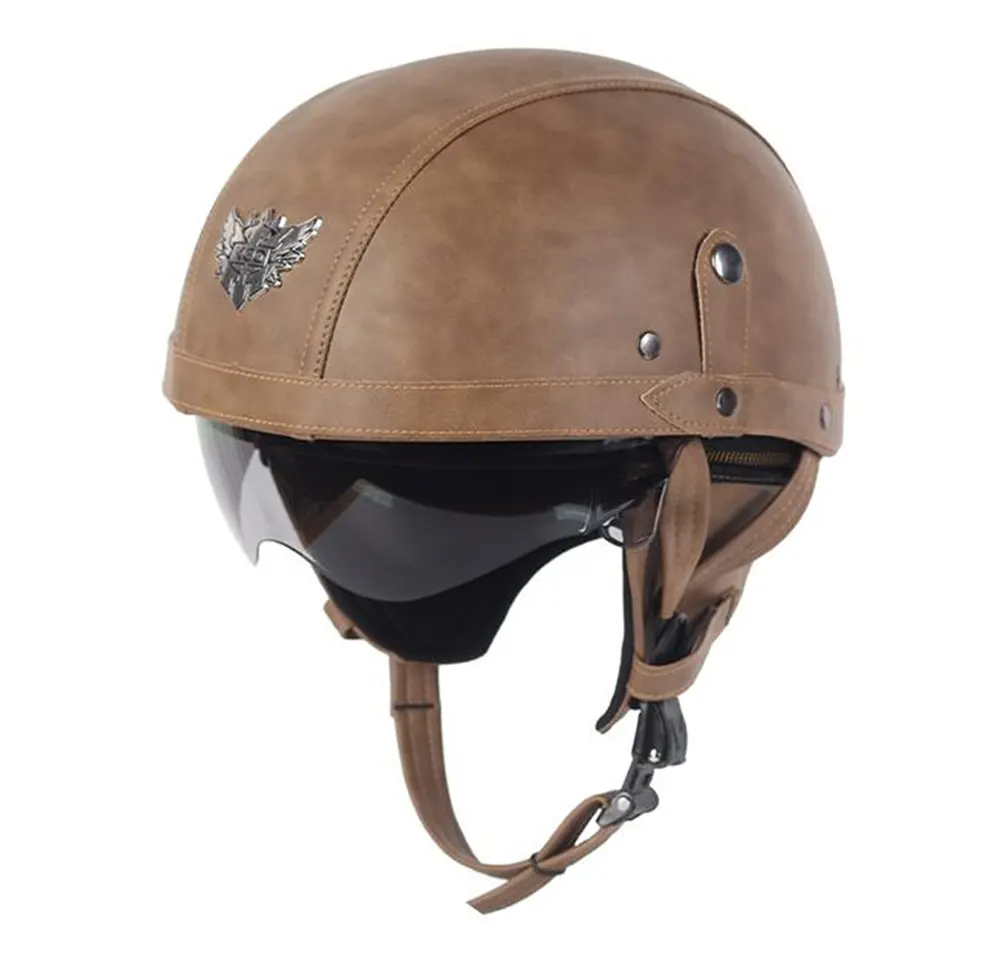 Горещи маркери: Мотоциклетна каска с половината лице, кожена с очила, кожена каска с очила, персонализирана каска с половината лице