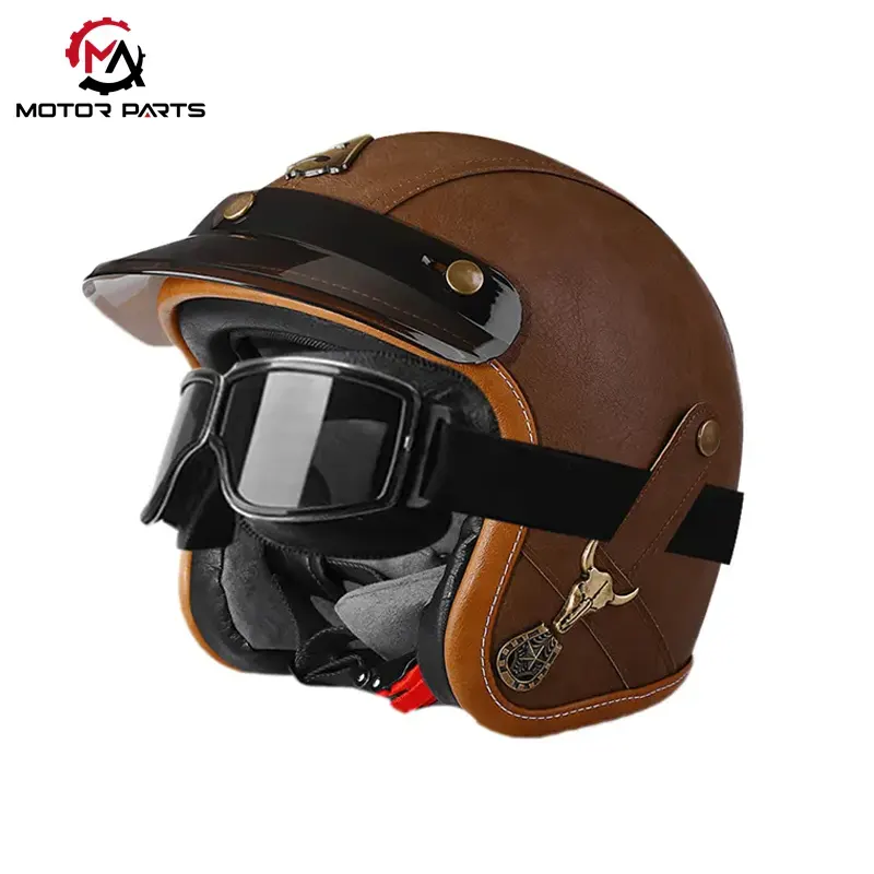 China Motorcycle Half Face Helmet Leather With Goggles е полукаска в ретро стил от производителя Max Trading, съчетаваща защита за безопасност и стилен дизайн, подходяща за водачи, които ценят както индивидуалността, така и практичността.