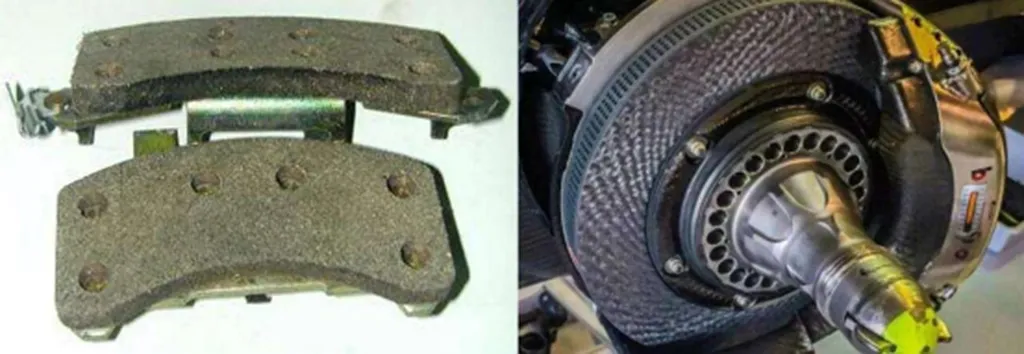 Азбестови спирачни накладки и високоефективна спирачна система от въглеродни влакна