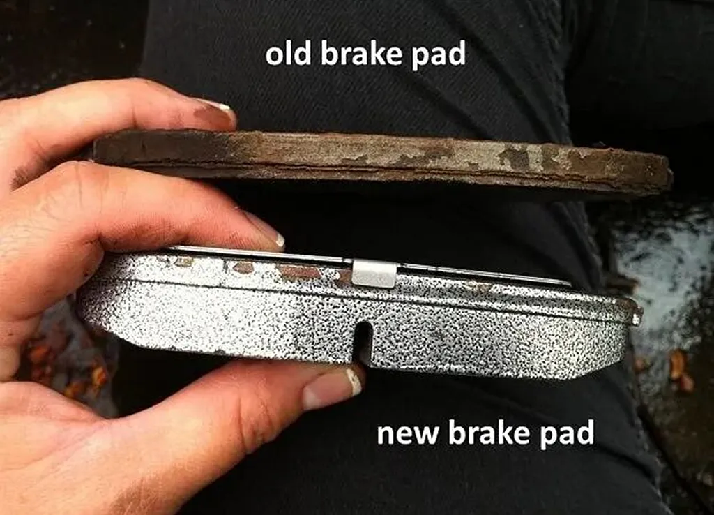 1. Можем да определим дали е необходима смяна, като наблюдаваме дали дебелината на спирачните накладки отговаря на стандартната линия за смяна, както е показано на фигурата. Когато износването достигне долната линия на жлеба на индикатора, трябва да се смени. Въпреки това, поради липсата на международни стандарти за слотовете за кабели на индикатора на спирачните накладки, различните марки спирачни накладки имат различни линии за безопасност при износване. Следователно е необходимо да се обърнете към ръководството на продукта за подмяна в рамките на безопасния диапазон, когато е необходимо.